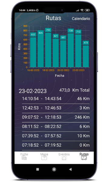 App GPS con todos los recorridos y datos del vehículo en directo