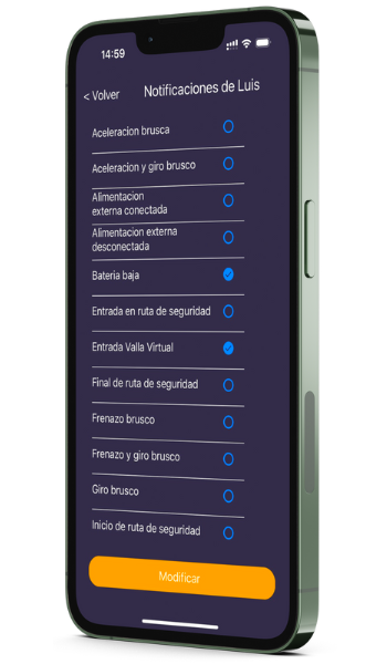 Configuración de notificaciones: Esta App para GPS permite personalizar cualquier tipo de aviso, para que puedas recibir notificaciones cuando el vehículo sale de una zona marcada (también llamadas vallas virtuales).